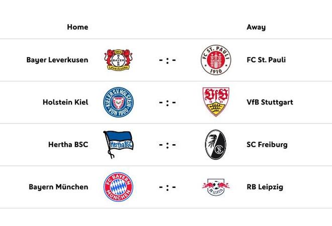 德国杯1/4决赛对阵形势:拜仁vs莱比锡,勒沃库森vs圣保利